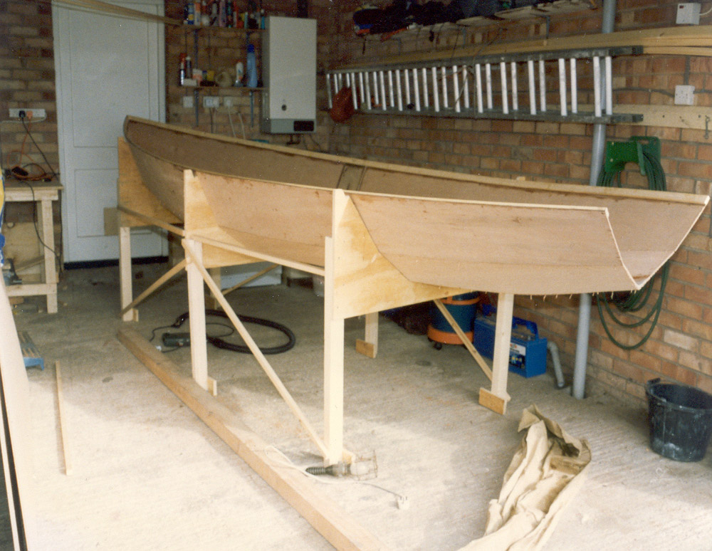 | The keel was then encased, glued and screwed with marine ply. The boat was finished with two layers of glass cloth before painting |
